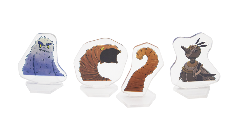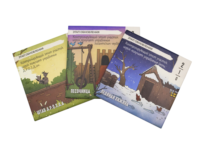 - 3 карты, 3 участка и 4 фигурки (у гигантского червя есть голова и хвост) обитателей фермы